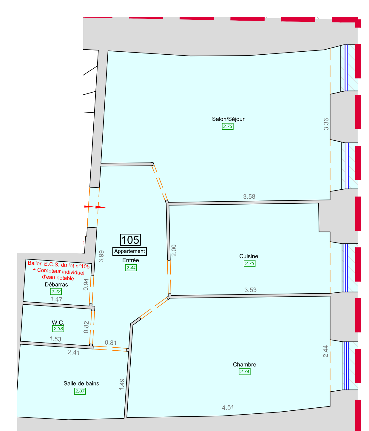 - Surface 45.38 m2