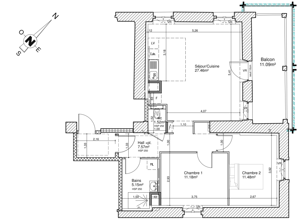 - Surface 64.36 m2
